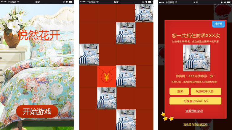 家纺行业营销微信游戏案例之《悦然花开,幸福多一点。》游戏截图